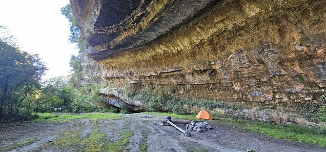 The limestone outcrop forms a perfect sheltered spot for camping and it is clearly a popular place (probably more so in the summer months than when I was there). There is a long drop toilet and people have built up some fire pits with plenty of areas to set up a tent all around the area. The only negative was that the trees and rock blocked out most of the sunlight, so it was very cold through the night and well into the morning as I was packing up, but this wouldn't be an issue in the warmer months.