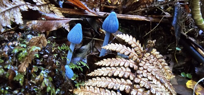 You start out on the Inland Pack Track which leads you into the forest where the trail starts to get a little more rugged as it follows the Fox River along the true right. I was doing this in late April and was particularly fortunate with the weather, having had a solid week of sunshine ahead of my trip. As I wound my way through the forest track, I spotted some blue mushrooms which I had only seen once before over here. The colour still amazes me and really sticks out amongst the fallen brown fern leaves and shadows cast through the surrounding canopy.