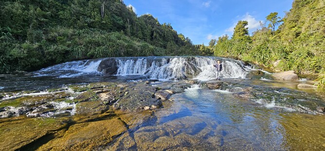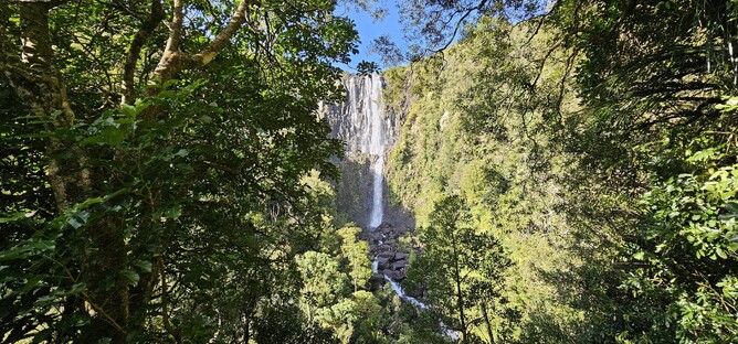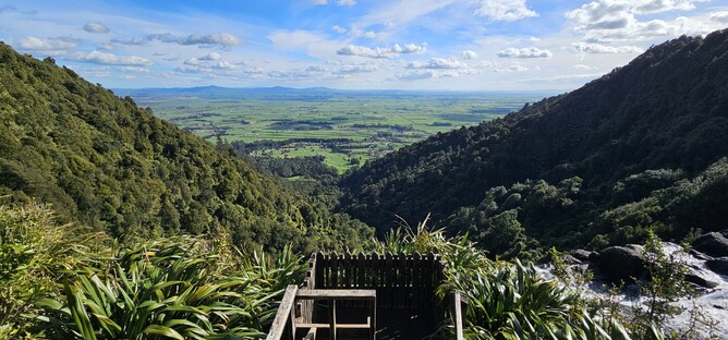 As with so many tracks that have the word "viewing platform" in them, there are some steps to be negotiated on this track! However, they do seem to pass by quite quickly and within 30-45 minutes of leaving the car park you find yourself at the first of the viewing platforms. If waterfall views are what you are after, then this is the best spot. You don't really see the falls from the top platform, but here you get a great view of the North Island's tallest waterfall, standing at 153m.