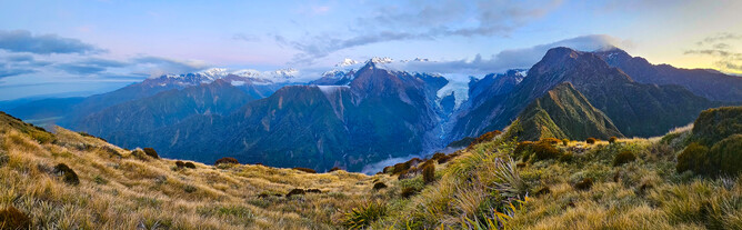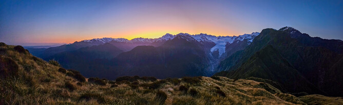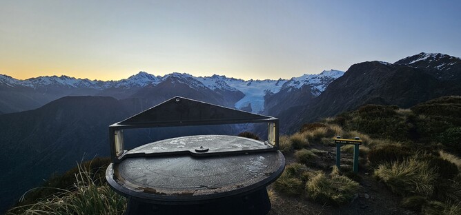 I had set off just after 4pm that day in the hope I would make it up for sunset. The weather forecast was for a clear night and morning the next day, but some clouds that evening, so I wasn't expecting too many views on the way up. I did see the Glacier at the Rata Lookout, but it was much better the next morning so my photo below is actually from the following day. From the start of the track it had taken me approximately 70 minutes to the lookout. If you aren't looking to go all the way up to Alex Knob, this could be a turnaround point. Though if you have made it this far and are feeling good, then it is only another 30-40 minutes to the Christmas Lookout which offers a slightly clearer view of the Franz Josef Glacier, so it could be worth continuing on.