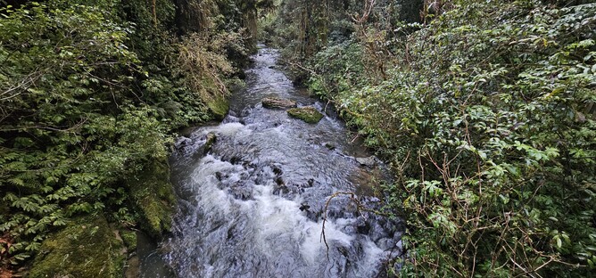 I turned left and followed the path down towards the view of the tunnel from the outside. It gives you a good view of the river and a little glimpse at the tunnel entrance, but is certainly not the best view. Following the river along, the path then slowly winds back up through a series of little tunnels with windows allowing for views out into the bush.