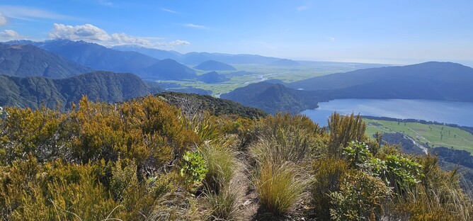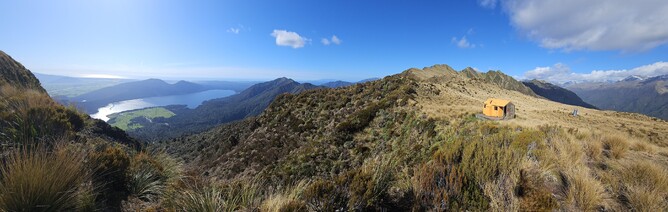 As you approach the top of the tree line, the muddiness increases, just to challenge the motivation a little more! However, once you pop up out of the trees, the views make you forget the hard slog and you can just enjoy being in one of the most stunning places imaginable. Lake Kaniere forms a bit of a focus point for your attention, however soon the detail in the full picture emerges which is even more prominent up higher - braided river, coast line, lake and bush in one direction and then snow capped mountains in the other. Certainly worth taking a minute to enjoy before embarking on the final 30 minutes to the Hut.