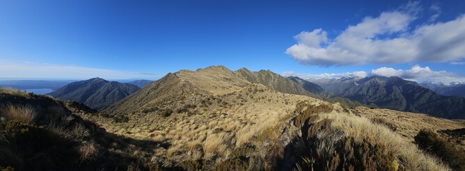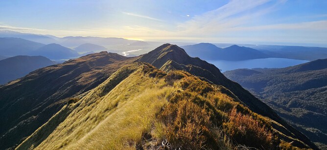 The hut is sat beautifully perched on a ridge with the Lake below and mountains all around. It really is perfectly nestled into the mountain and provides a great base for further exploration! After I had reserved myself a bed and lightened my bag somewhat, I departed the hut and started the next phase of the walk up towards the summit. From the hut I turned right and followed the ridgeline up in the direction of the summit.