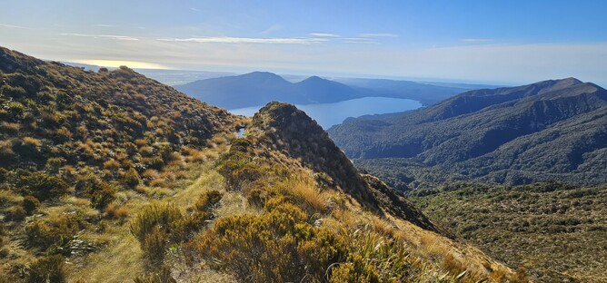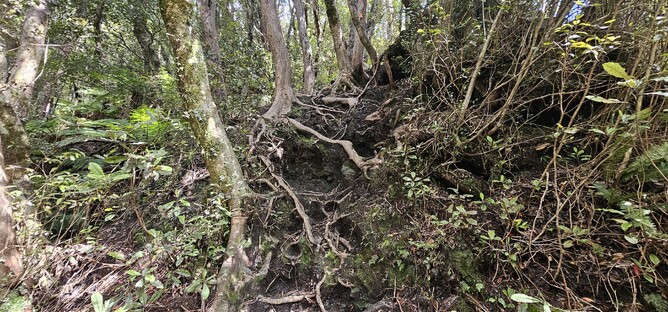 Following the stream crossing you continue on through the bush. The track is well marked, but at times it can be easy to miss a marker, so if you haven't seen one in a while it is worth tracking back a little to ensure you haven't followed an animal path by mistake. From here the route starts getting steadily steeper and you will find yourself scrambling up tree roots and around rocky boulders. There is the occasional gap in the trees for you to enjoy a bit of a view back out across Lake Kaniere and catch your breath.