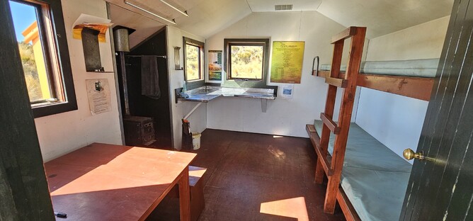 This is a four bunk hut that is not part of the DOC network and cannot be booked, so it is first come, first served. Unfortunately, it seems that many people decide not to fill out the visitors book (important for both safety and monitoring) and do not pay for use of the hut, which is a real shame given that this hut was moved here and is maintained by a volunteer group.