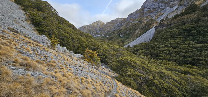 Every so often you drop back into bush for short periods, but then back into the open valley with beautifully coloured vegetation either side and incredible grey cliffs framing the view brilliantly.