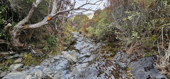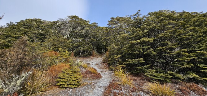 Seeing the sign for the junction with the Ridge Track was a pretty nice feeling and relieved I had a bit of renewed energy for the four hours that remained to the Hut. From the sign the track levels out a bit and leads out towards a more open section. There is still some elevation to be gained, but at a much kinder rate.