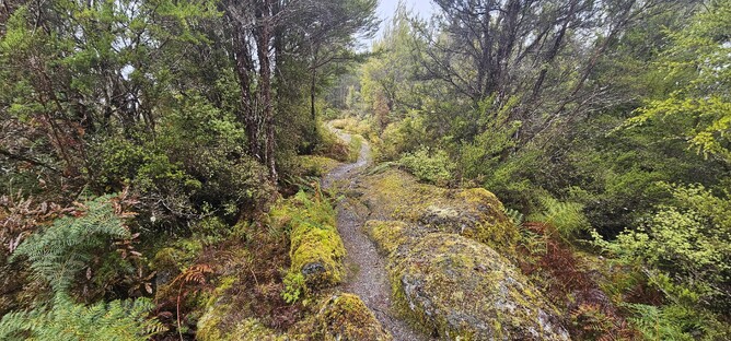 The return back out to the car park follows the same track back out through to the junction. From here I continued on to the Ridge Track, but sadly the fog hadn't really lifted much and so views were limited.