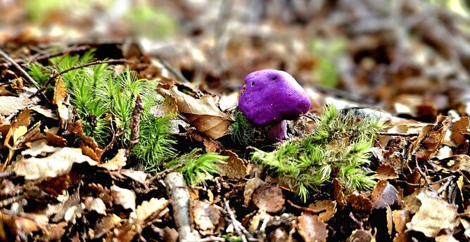 This section of the track takes you from the stream up to the ridge and connects up with the Ridge Track. It took me around and hour and 20 minutes to get up to the track junction, but somehow felt a lot longer. A relentless slog up through the bush, scrambling up roots and little muddy sections of track. Along the way there weren't too many views out, but it is a healthy New Zealand bush with lots of plant and birdlife to enjoy along the way, including some purple mushrooms.