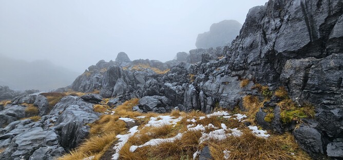 I did make an attempt to go to the summit the next day, but conditions had worsened and the rocks were slippy. Being alone, I had no desire to be stuck down one of the enormous cracks in the rock having slipped, so I went as far as I could without having to take unnecessary risks before turning around and starting the journey back out to the car.