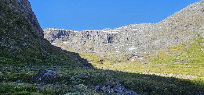 Popping out of the bush you find yourself in a beautiful valley that makes you feel tiny. The path used to be really well defined and easy to follow when I had been previously, but on this occasion, it was a little more tricky to pick my way along the rock fall and towards the end of the valley. It is easy enough if you know where you are headed, but certainly worth ensuring you keep searching for orange markers if unfamiliar with the area.