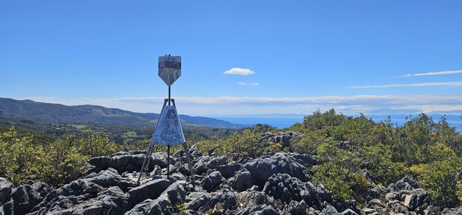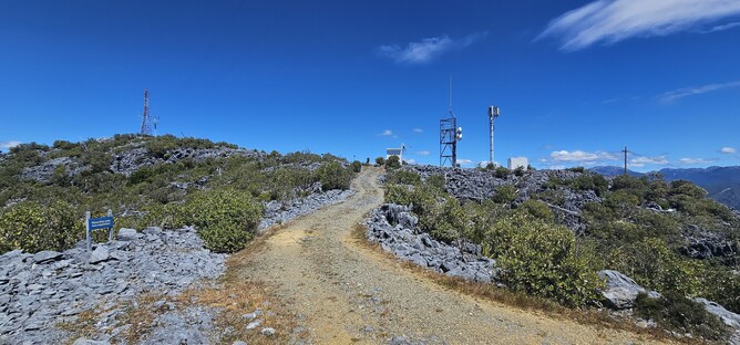 The short 15-minute walk didn’t really seem like enough of a walk, so I decided to follow the markings towards the antennas. Initially following the track through the rocky top section, I then dipped down into the bush before arriving at another gravel road which led all the way up to the antennas. It took around 10 minutes from the Trig, so really not that far and from here the view opens up across to Golden Bay and the beautiful mountains surrounding you.